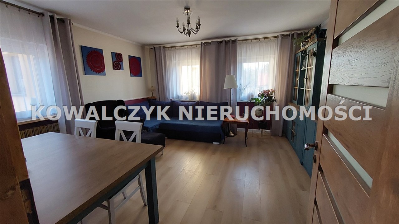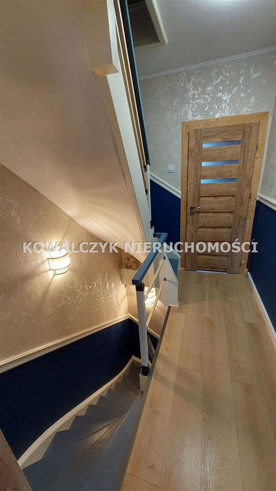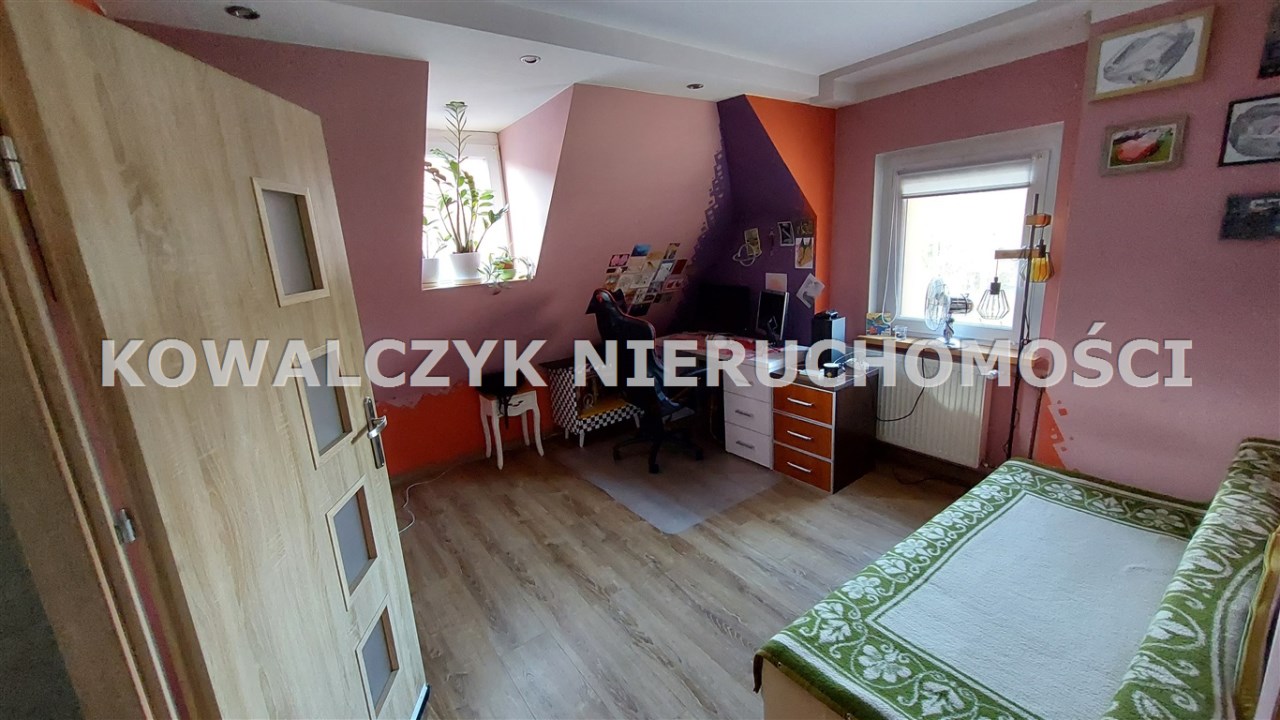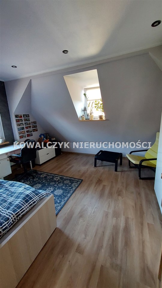 Na parterze: przedpokój, toaleta, sypialnia, pokój , na piętrze znajduje się salon ,odrębna kuchnia z oknem, łazienka. Na drugim piętrze znajdują się dwa pokoje. Do dyspozycji pozostaje piwnica ( trzy pomieszczenia) , strych oraz taras pełniący funkcję ogrodu zimowego.
