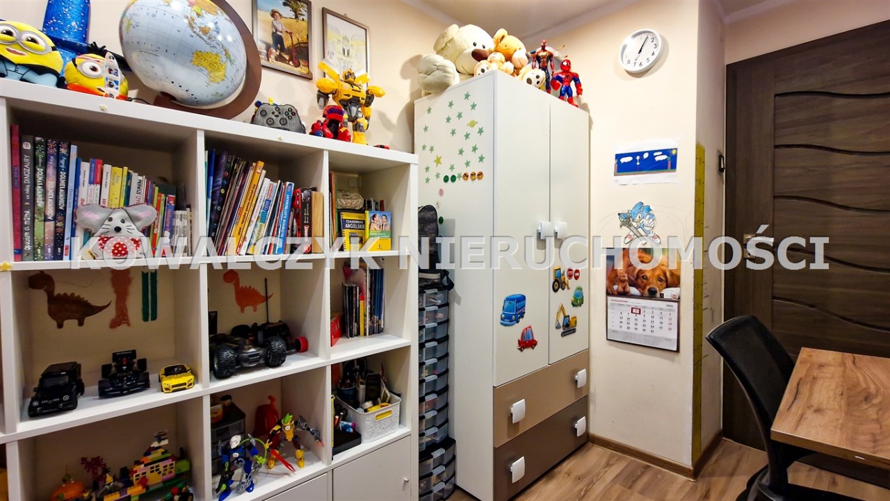 Powierzchnia 48 m² obejmuje salon z balkonem, sypialnię, pokój dziecięcy, kuchnię, łazienkę i przedpokój. Do mieszkania przynależy piwnica.