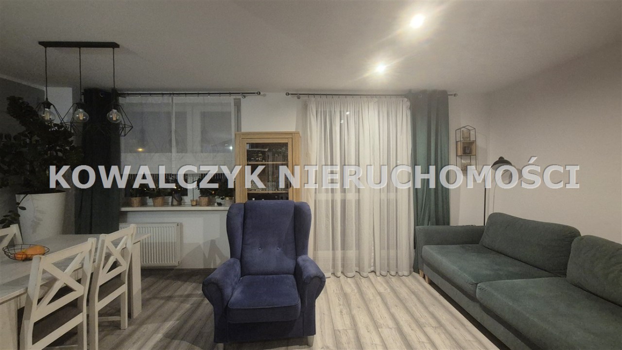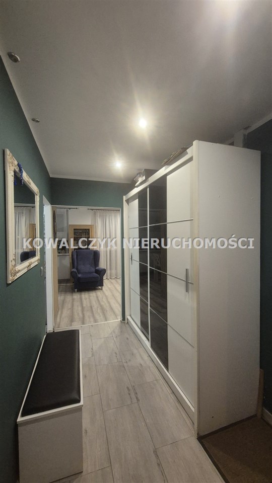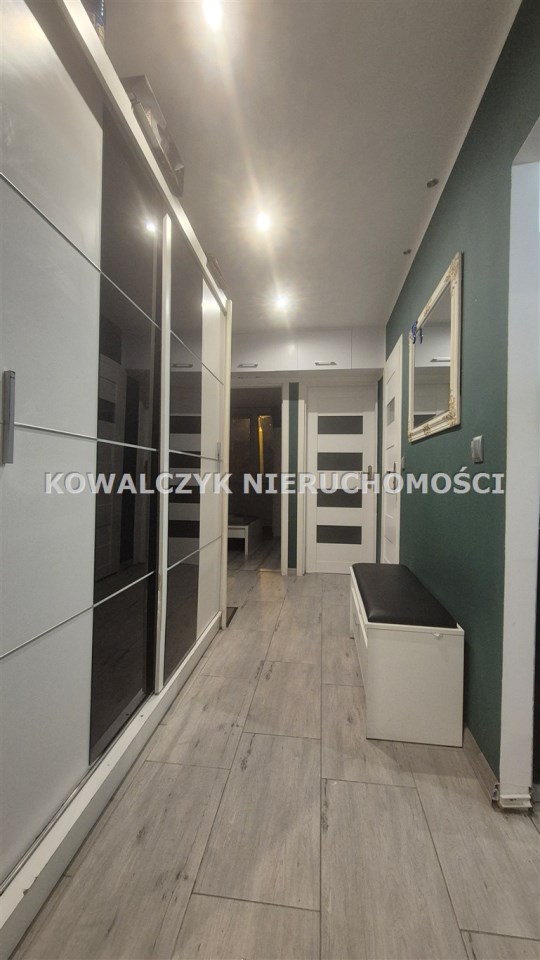 Powierzchnia mieszkania to. 56 m2, na którą składa się duży przestronny salon z wyjściem na duży balkon, 2 niezależne pokoje, kuchnia wraz z zabudową meblową oraz sprzętem AGD, połączona z salonem, łazienka z wanną oraz przedpokój. W przedpokoju szafa z lustrami, na ścianach gładzie gipsowe, na podłogach w całym mieszkaniu w pokojach panele podłogowe, w kuchni, przedpokoju i łazience na podłodze kafelki.