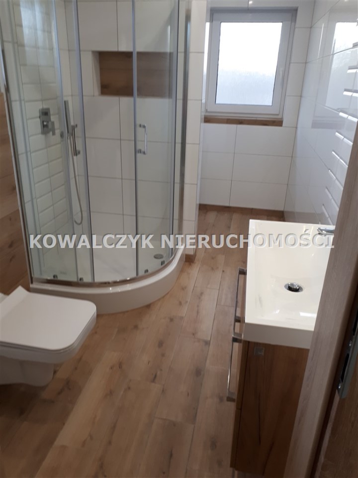Na podłogach w pokojach panele w łazience oraz przedpokoju kafelki ( ogrzewanie podłogowe). Kuchnia całkowicie wyposażona w sprzęt AGD( lodówka, zmywarka, piekarnik, płyta indukcyjna, okap, zlew) oraz meble w zabudowie.